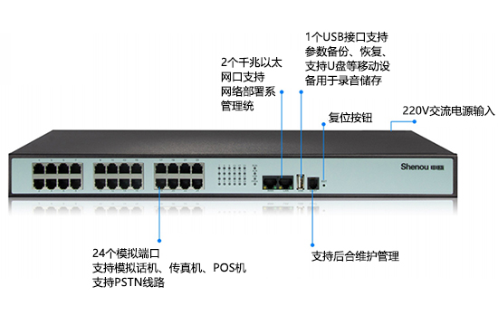 模擬中繼FXO及模擬用戶FXS:內(nèi)外線相加24個(gè)模擬接口(FXS和FXO)