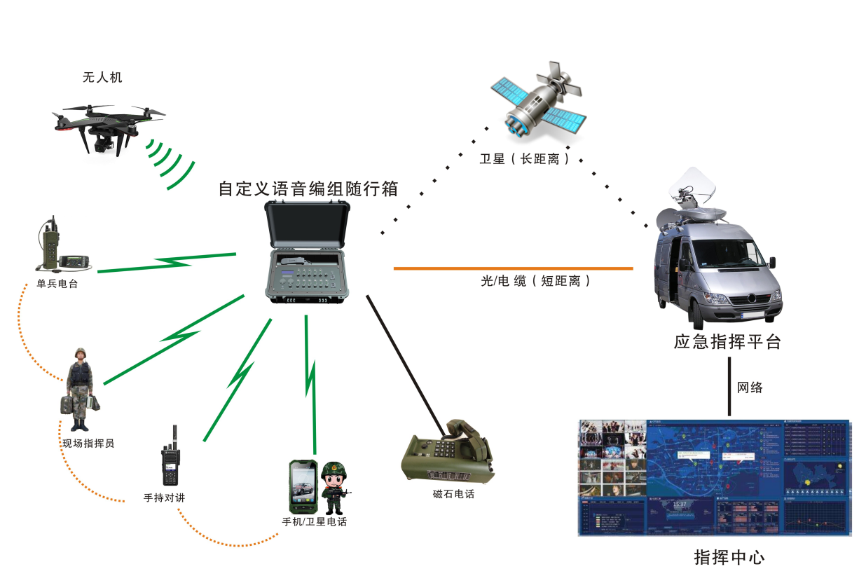 自定義語音編組隨行箱設備根據使用場合不同分為便攜式(防水)和機架式(可車載),滿足現(xiàn)場不同通信設備的快速互聯(lián)互通需求;支持有線延長模式(1.5Km),可將無線信號覆蓋至室內、地下或其它原來無法通信的特殊區(qū)域;支持快速分組模式,將接入的設備通過簡單的切換開關分成兩個通話組,同組有效語音互相轉發(fā),兩個組同步工作互不影響。為公共應急事件處理各組成單位提供通信設備的低成本互聯(lián)接入解決方案,快速完成現(xiàn)場統(tǒng)一的語音調度指揮系統(tǒng)搭建,為應急事件處理提供可靠的通信互聯(lián)平臺。