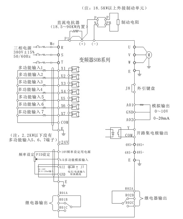 3、頻率給定方式:數(shù)字鍵盤(pán)給定、模擬量給定(電流、電壓信號(hào))、遠(yuǎn)程通訊給定、多段速給定、PID閉環(huán)給定等